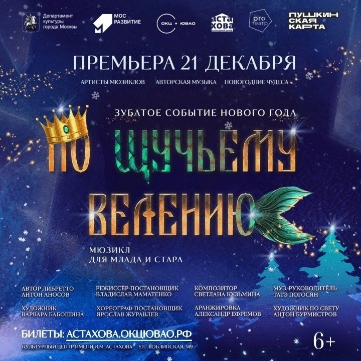 21 декабря в Культурном центре Астахова состоялась премьера яркой и волшебной музыкальной сказки “По щучьему велению”, подарившая зрителям атмосферу праздника и новогоднего чуда.